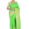 The Pure silk based Green color saree is crafted with golden zari made designer work. The pallu have golden zari made designer work. Golden Zari made designer border all along. Green color blouse piece.